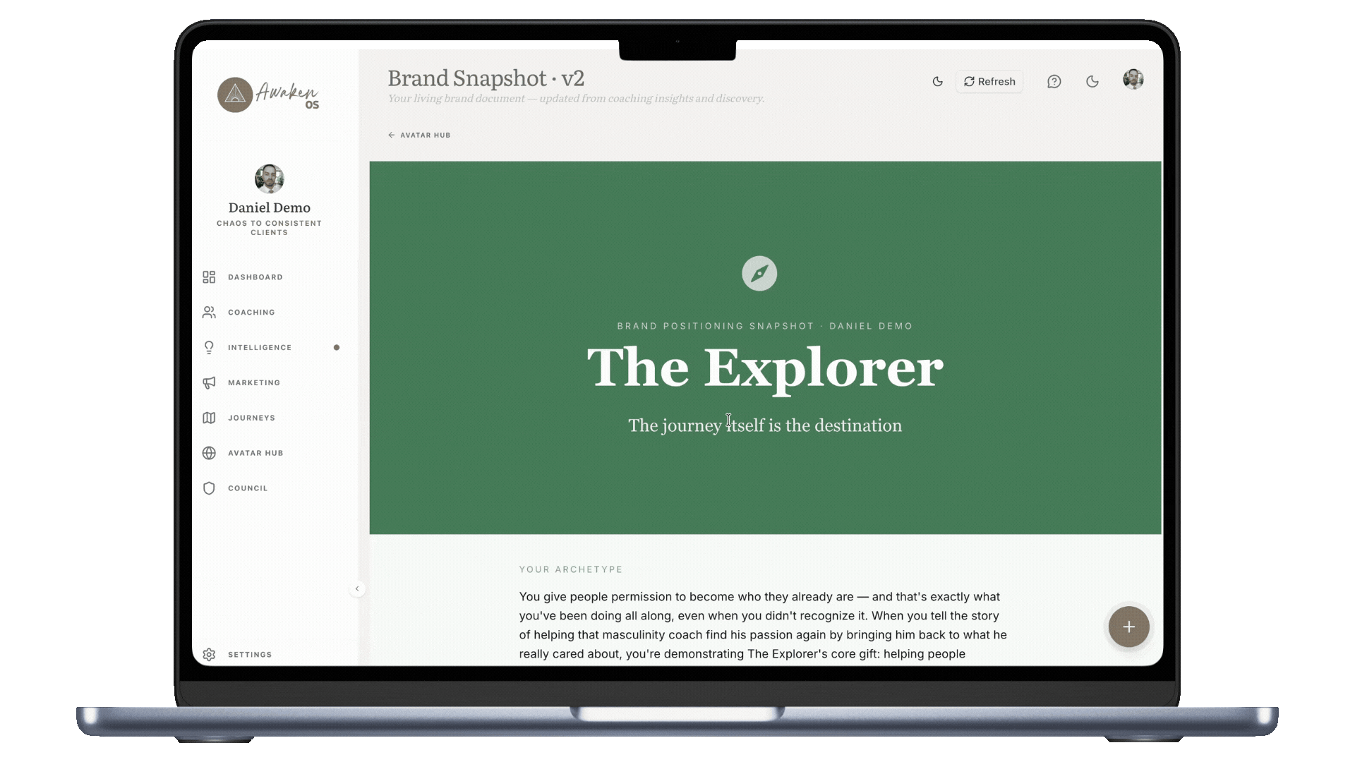 AwakenOS is something new. A platform that coaches you to brand clarity, keeps you in alignment as you grow, and turns your coaching into clients you love, content you're excited to share, and a practice filled with meaning.